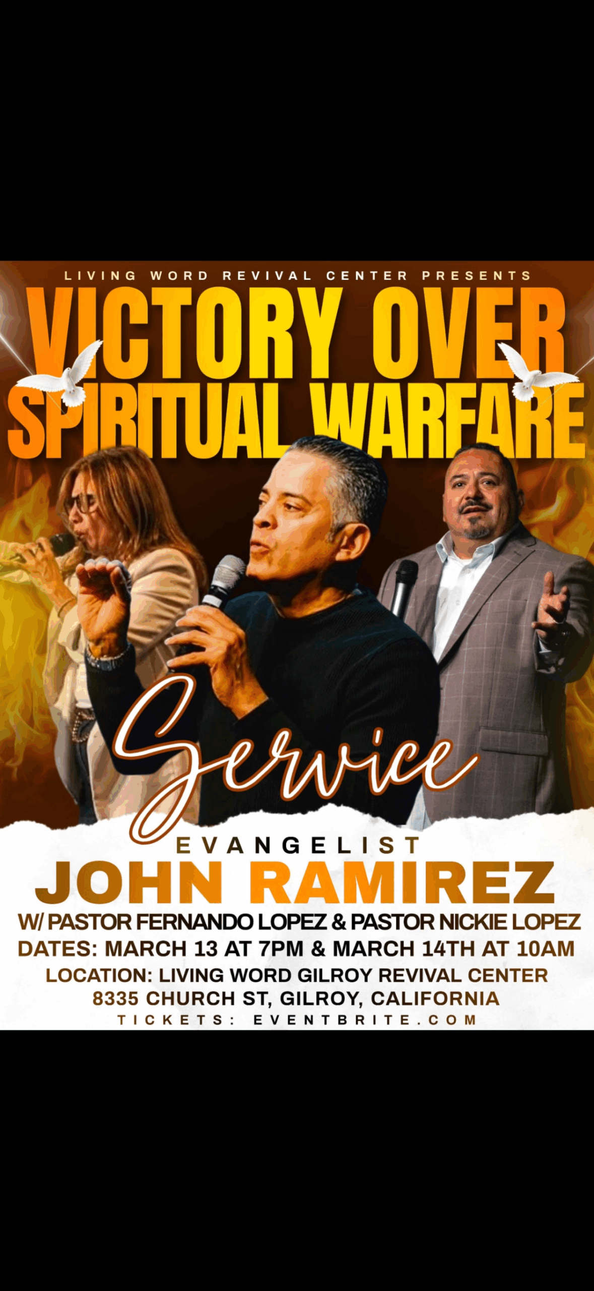 Date: Friday, March 13, 2026 @ 7 PM Saturday, March 14, 2026: 10 AM – Q&A Small Break 1 PM – Powerful preaching and deliverance Location: Living Word Gilroy Revival Center 8335 Church Street Gilroy, CA This is a God